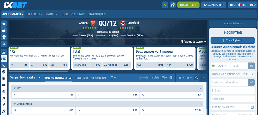 Cette confrontation promet une belle intensité. Arsenal part largement favori et cherchera à maintenir sa cadence infernale. Brentford, de son côté, tentera de déjouer les pronostics et d’arracher au moins un résultat positif. Outre le pari sur le vainqueur, les parieurs retrouveront de nombreuses options sur 1xBet : Double Chance, Pari Handicap, “Les deux équipes marquent”, Over/Under, et bien d’autres encore.